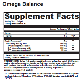 - Cardiovascular and Cognitive Support- OMEGA BALANCE is an omega 3 fish oil supplement that supports heart health and healthy cognition.